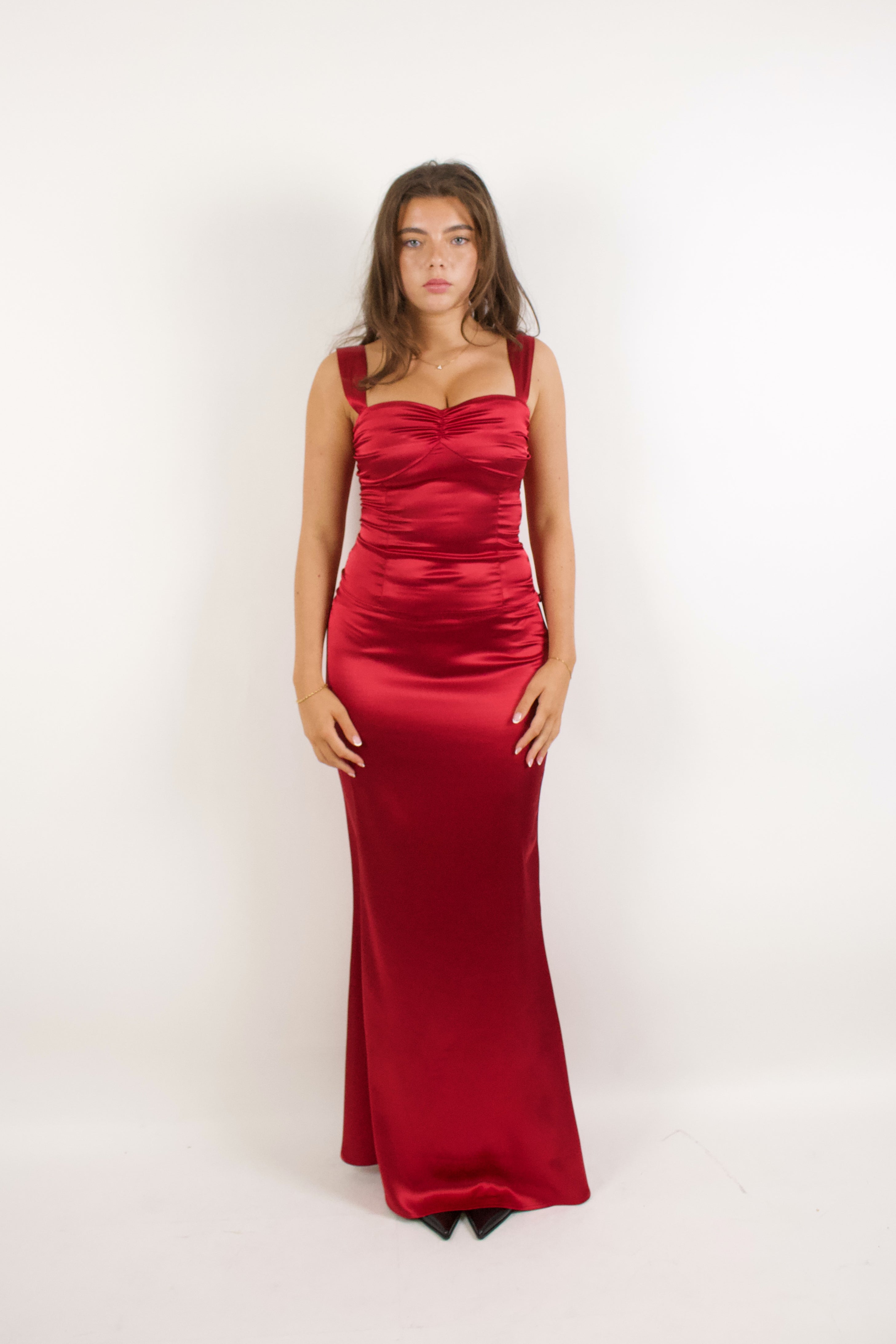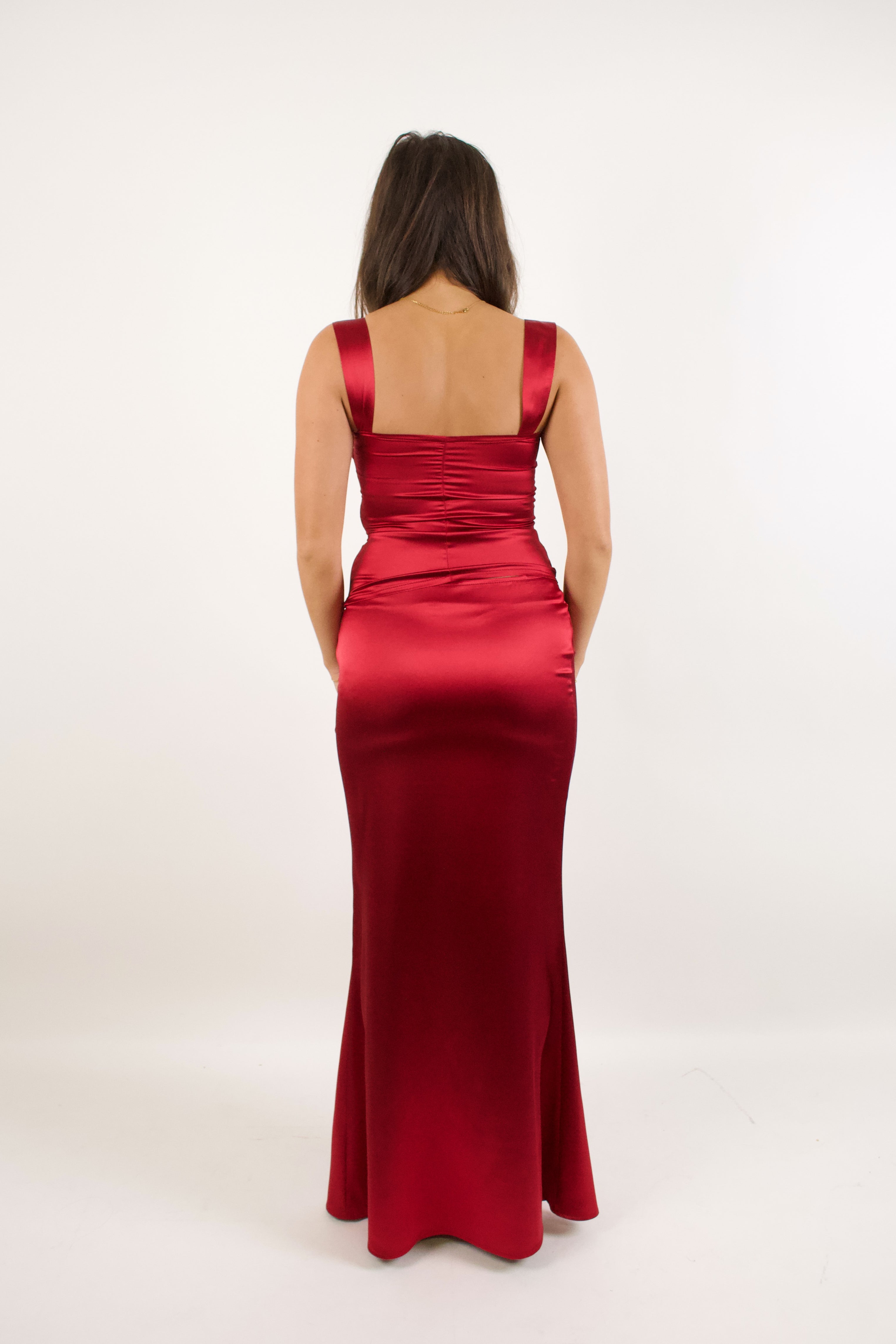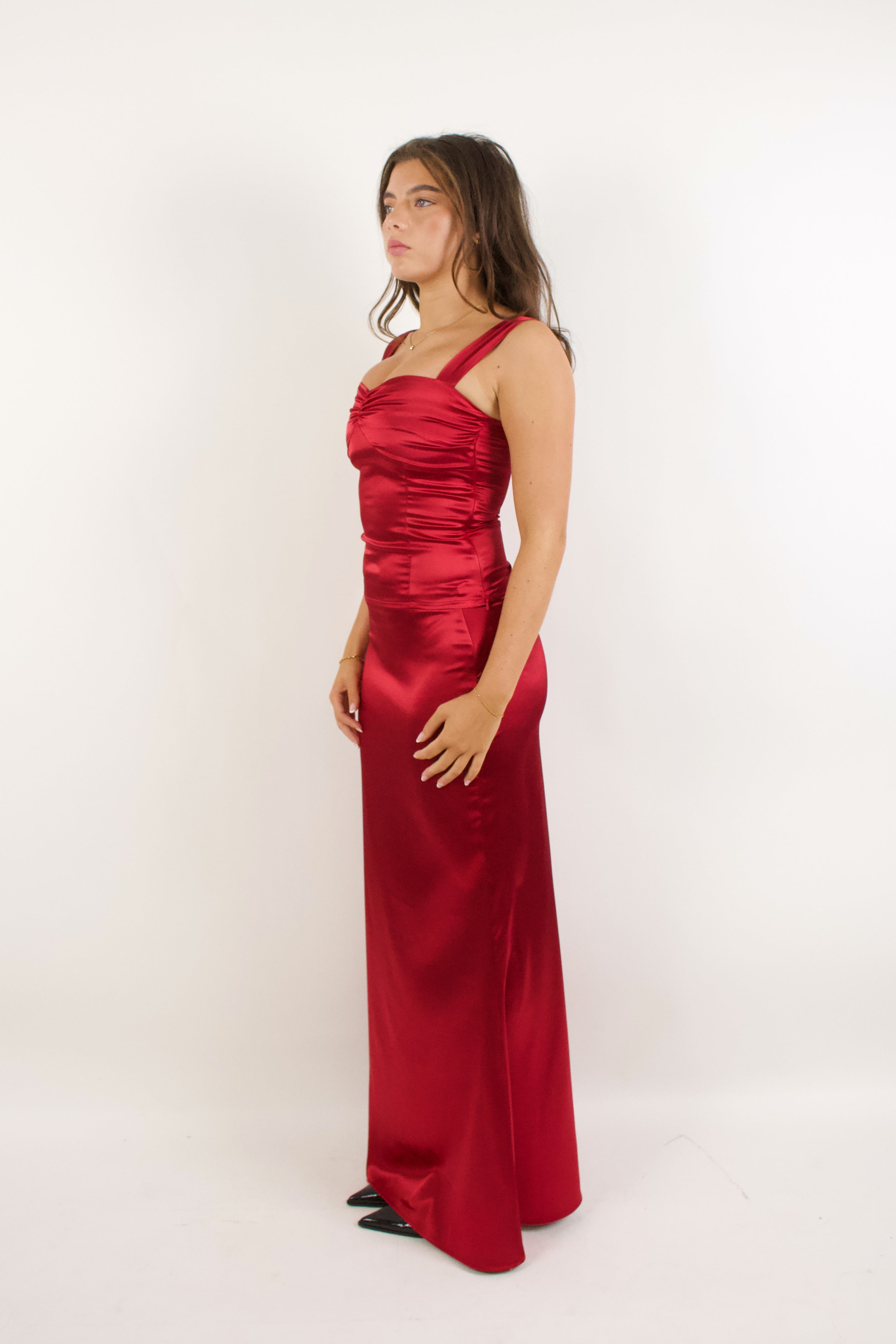 Timeless satin skirt in a crimson red, crafted with a lustrous, high-sheen surface that creates an elevated, couture-inspired look. Perfect for the events season. Finished with a concealed side zip for a seamless, tailored fit. Designed to pair effortlessly with the matching satin top for a polished, luxurious set.