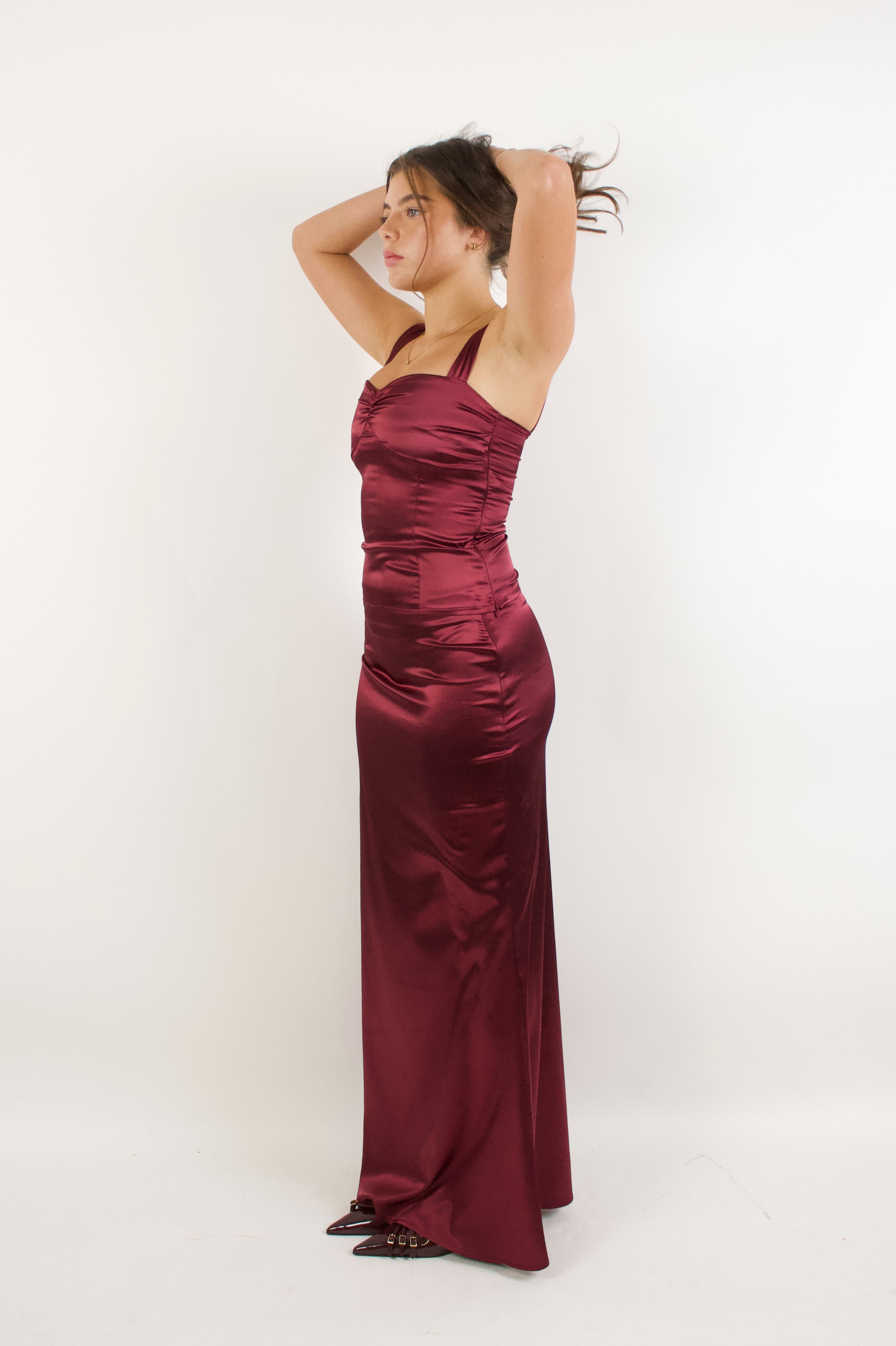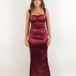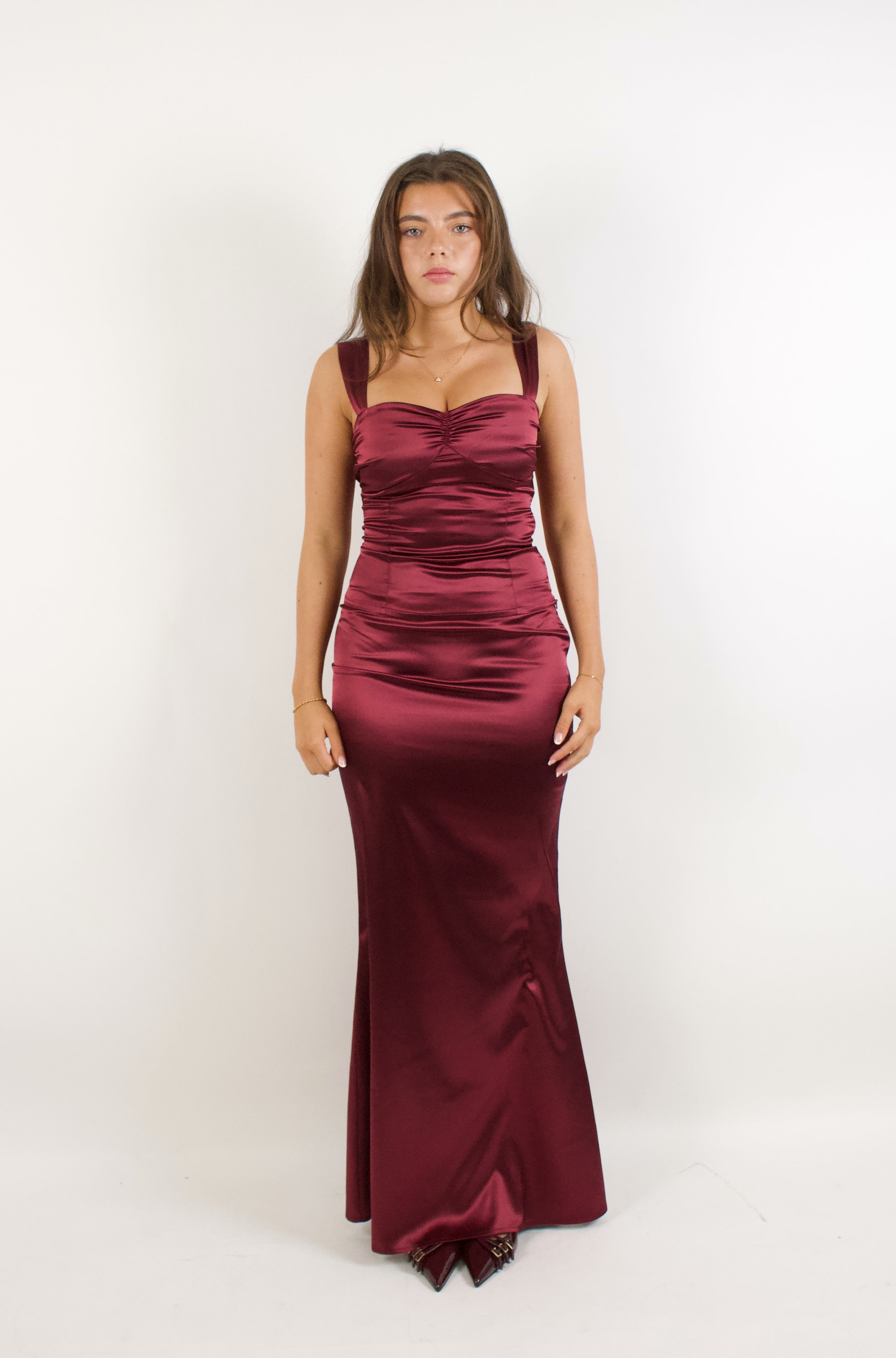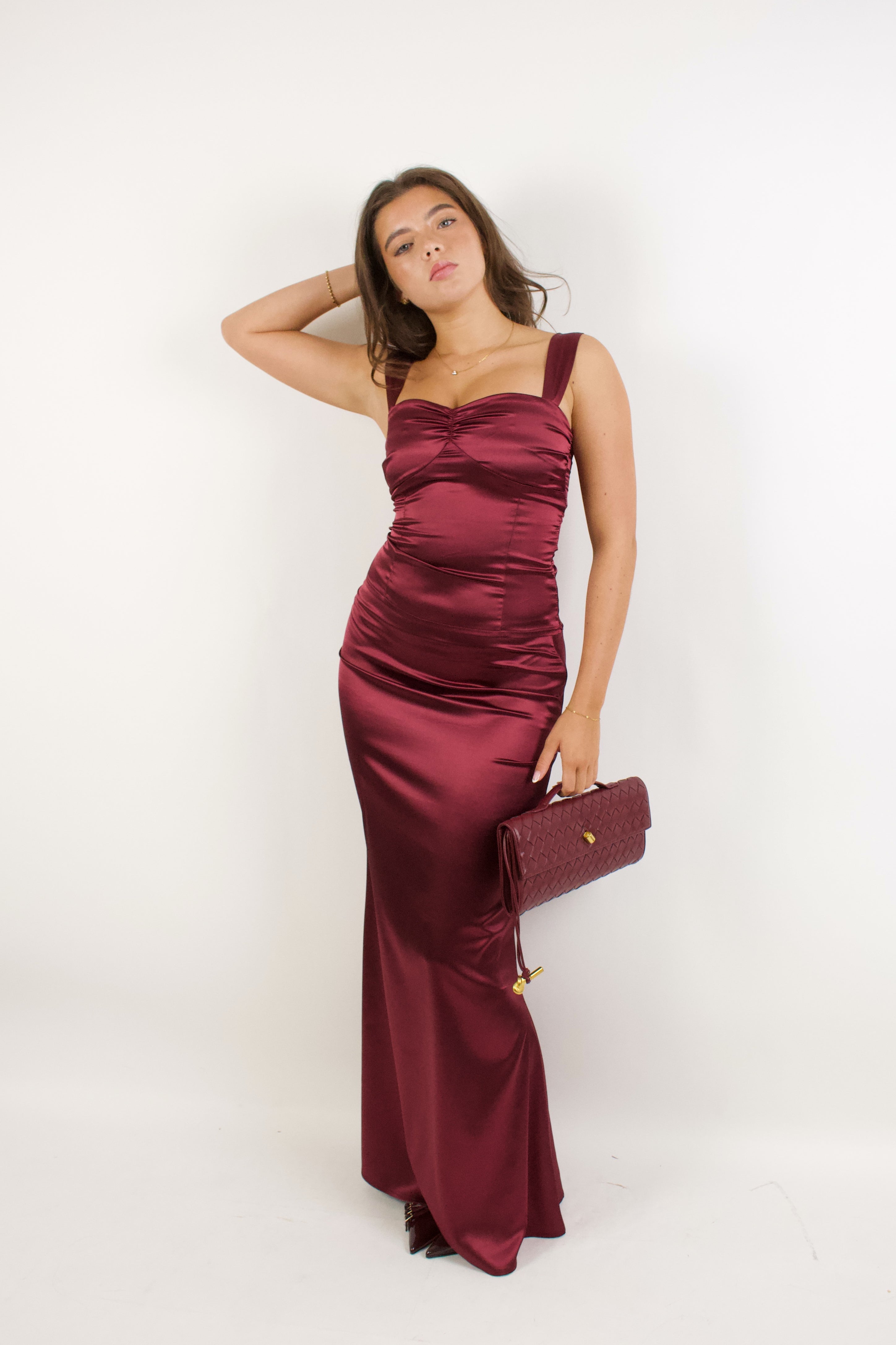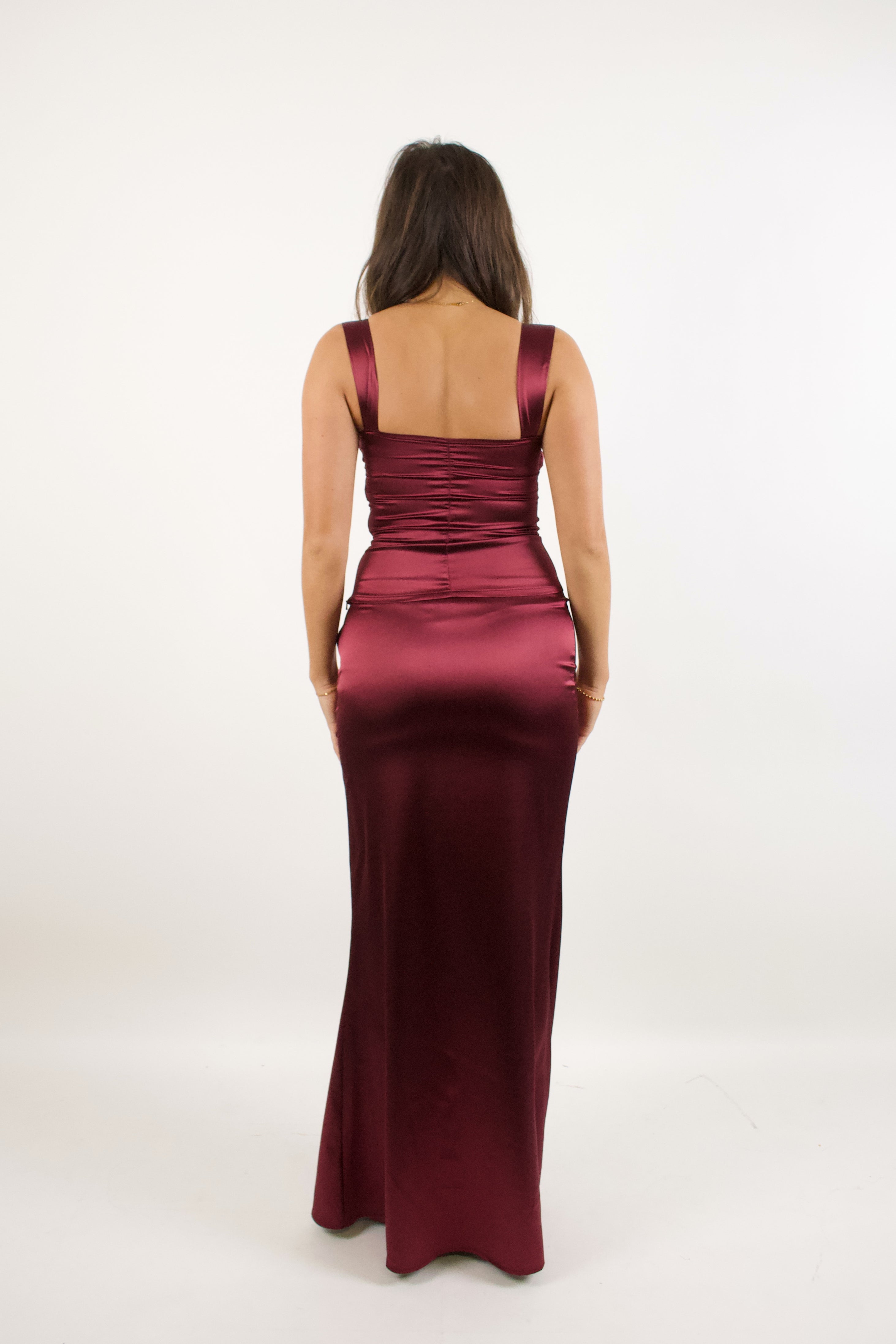 Timeless satin skirt in a rich burgundy, crafted with a lustrous, high-sheen surface that creates an elevated, couture-inspired look. Perfect for the events season. Finished with a concealed side zip for a seamless, tailored fit. Designed to pair effortlessly with the matching satin top for a polished, luxurious set.