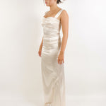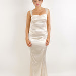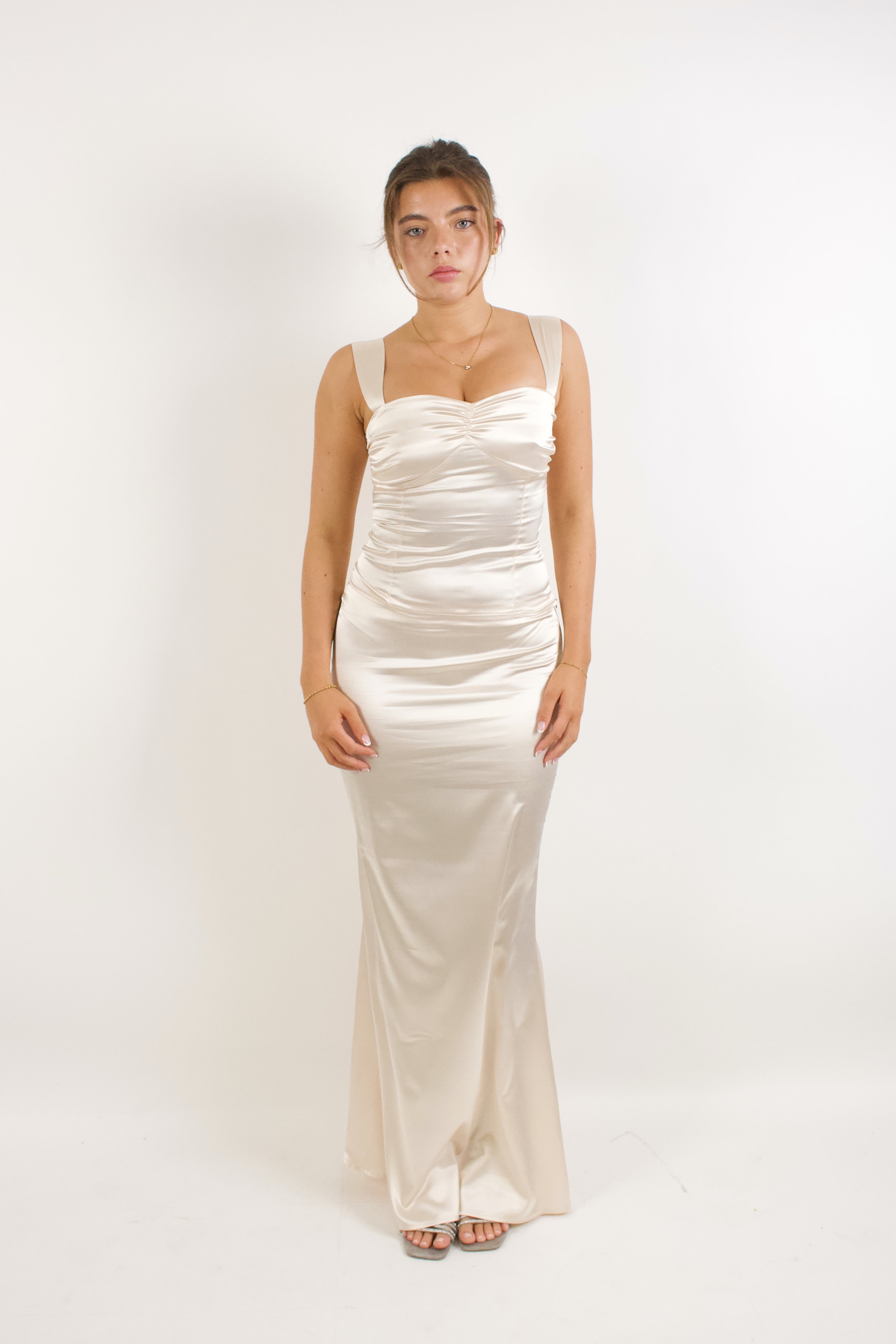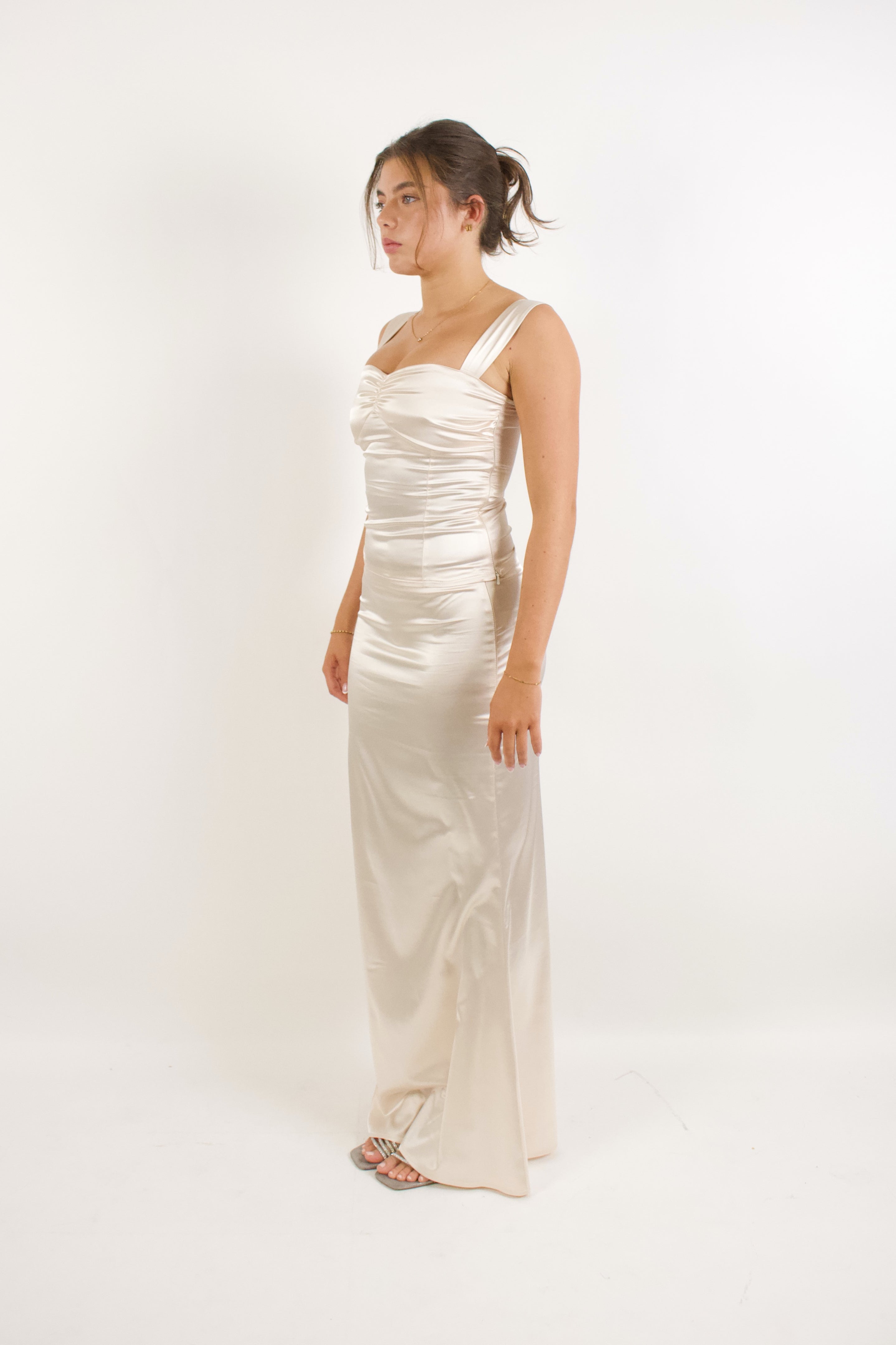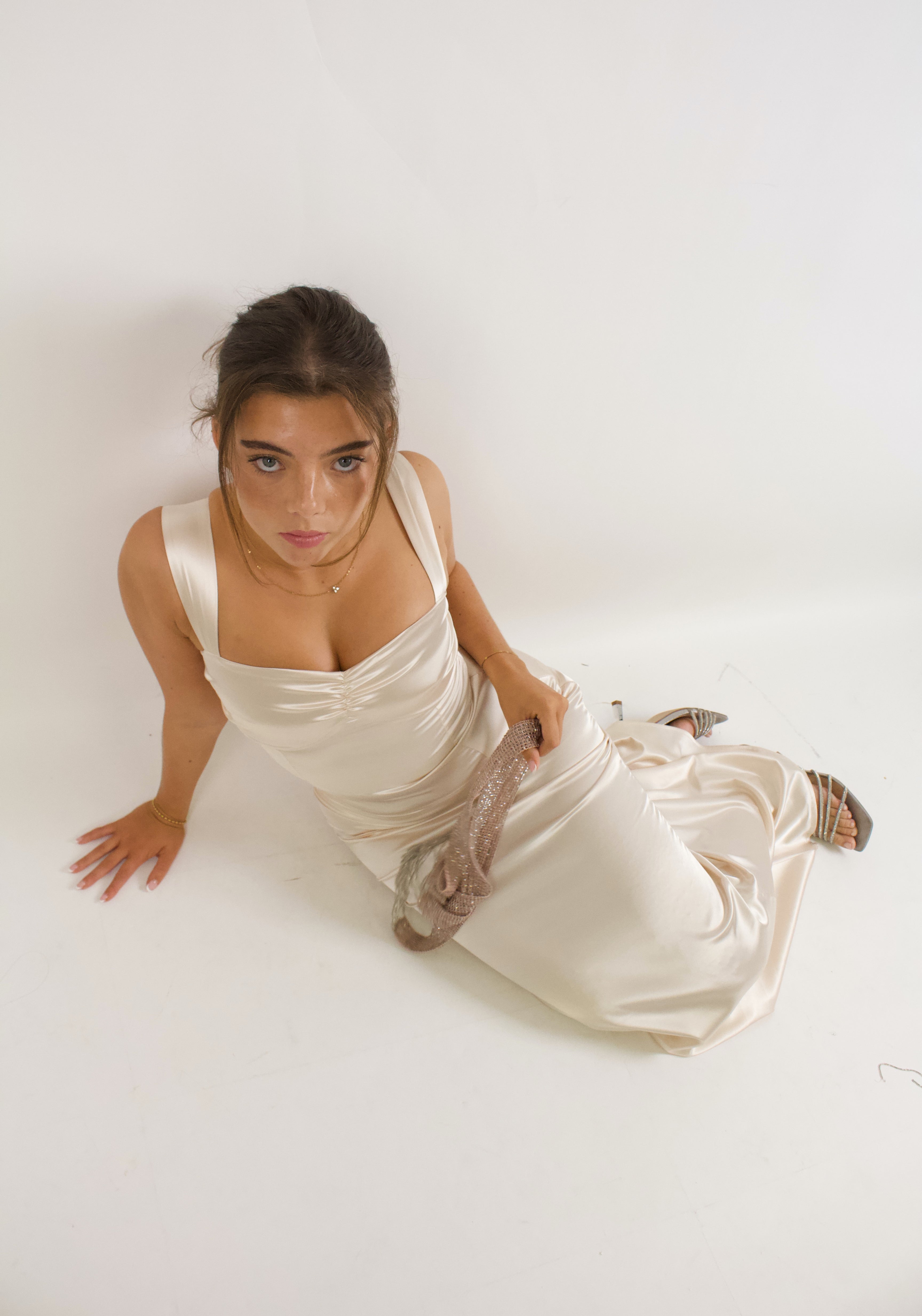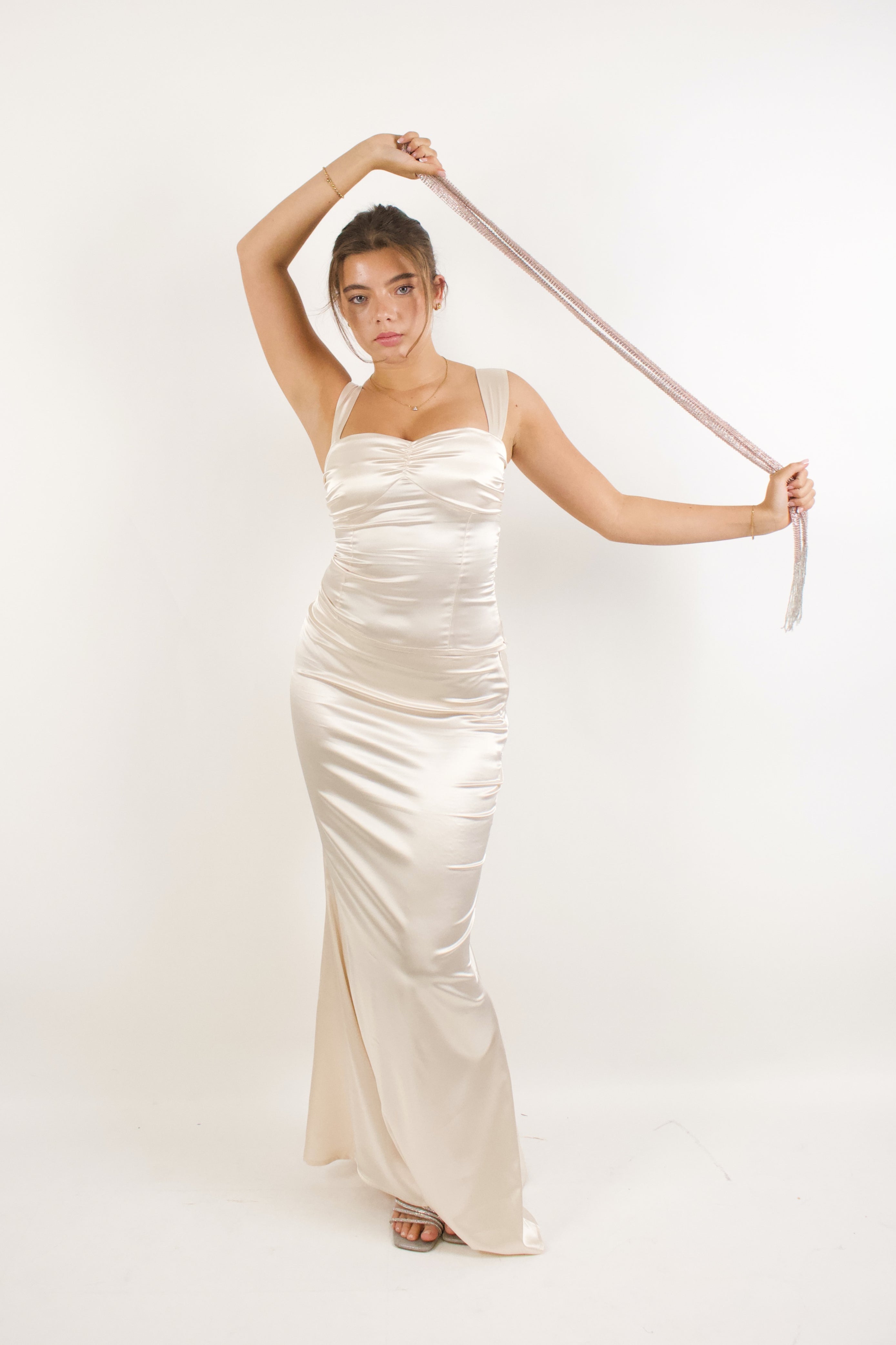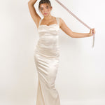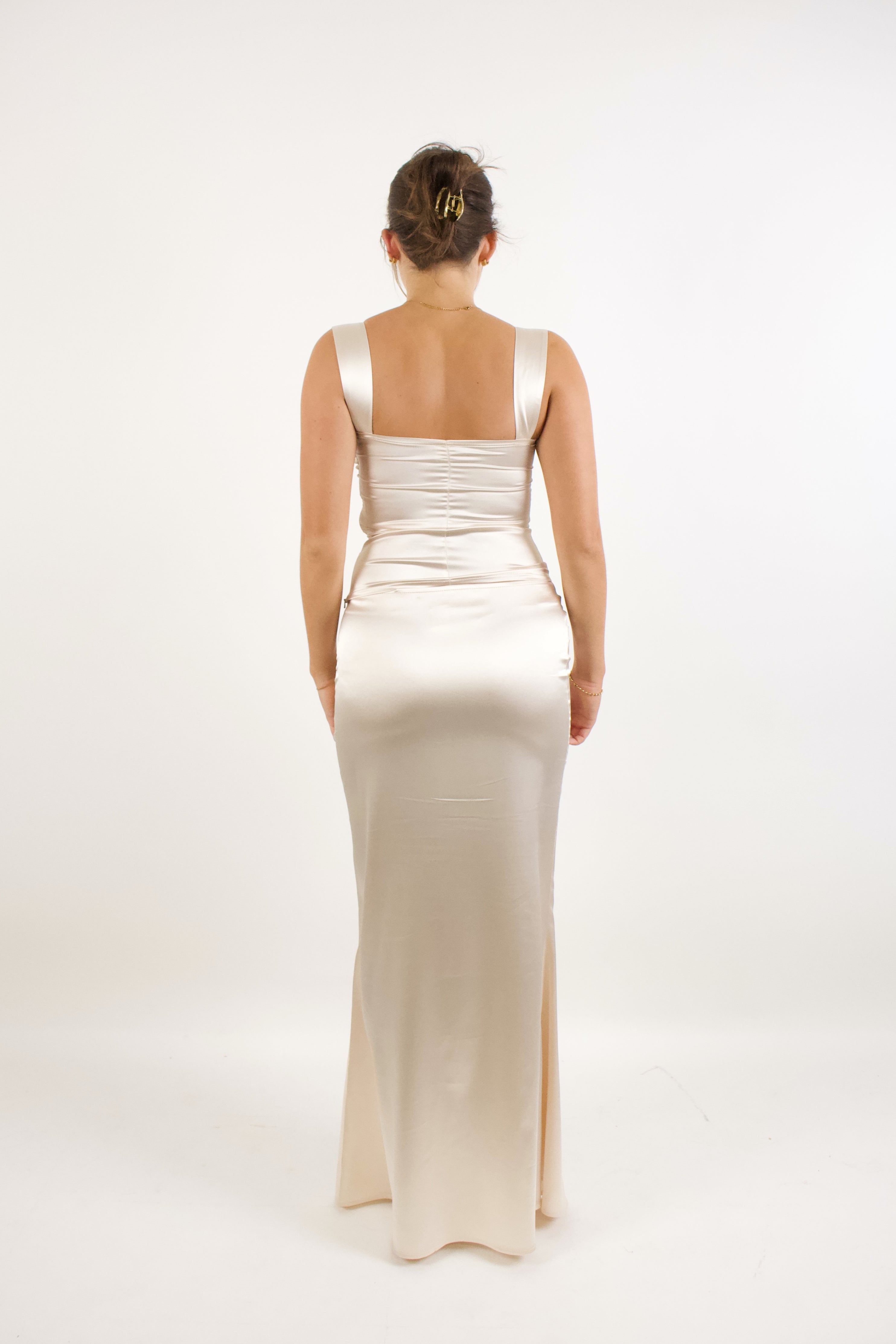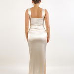 Timeless satin skirt in a champagne colour, crafted with a lustrous, high-sheen surface that creates an elevated, couture-inspired look. Perfect for the events season. Finished with a concealed side zip for a seamless, tailored fit. Designed to pair effortlessly with the matching satin top for a polished, luxurious set.